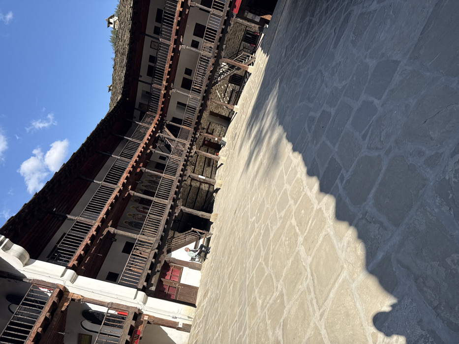 - "The image captures the interior courtyard of the Troyan Monastery in Oreshak, Bulgaria, under a clear blue sky with scattered white clouds" by FM-aFtII2, licensed under CC BY 4.0