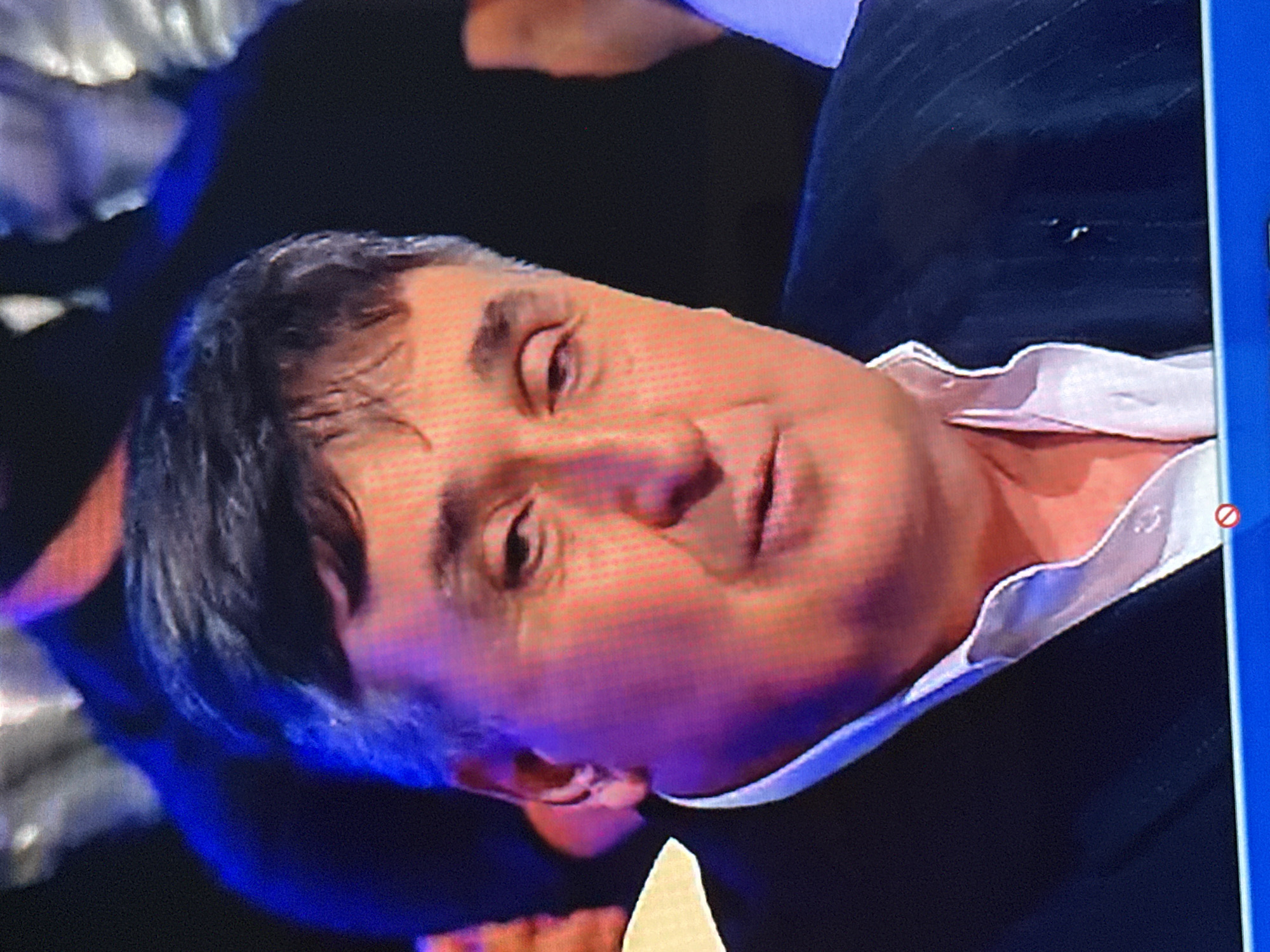 A man with dark hair and a white collared shirt under a dark suit jacket is shown in a close-up shot