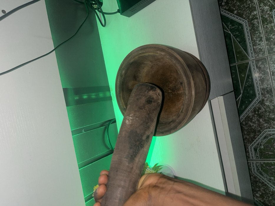 - "A wooden mortar and pestle rest on a white surface, illuminated by a green light source behind it" by FM-CUCk52, licensed under CC BY 4.0