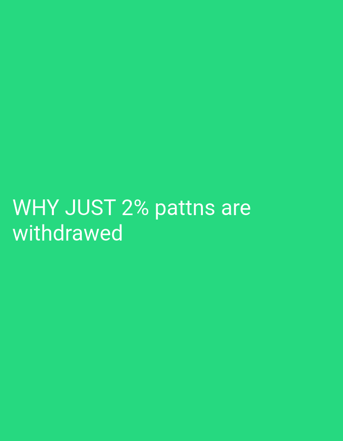 The image displays white text against a solid, uniform green background. The text, positioned in the lower-left quadrant, reads: "WHY JUST 2% pattns are withdrawn". No other visual elements, figures, objects, or actions are depicted. The scene is observed within Quetta City Tehsil, Pakistan.