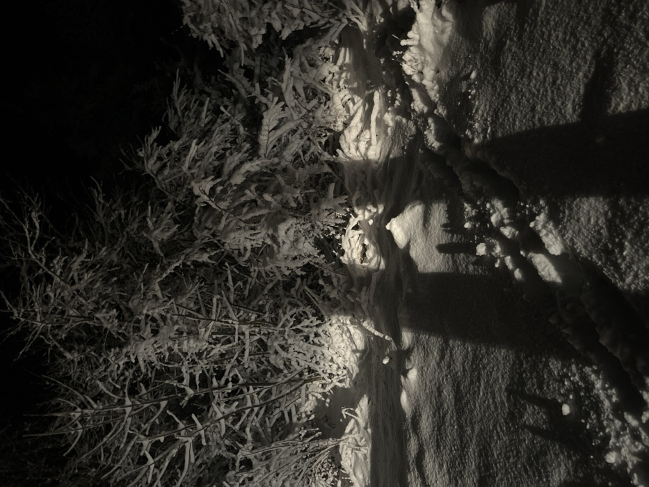 - "Snow-covered branches illuminated at night cast shadows on the snow-covered ground" by FM-rOKEu2, licensed under CC BY 4.0