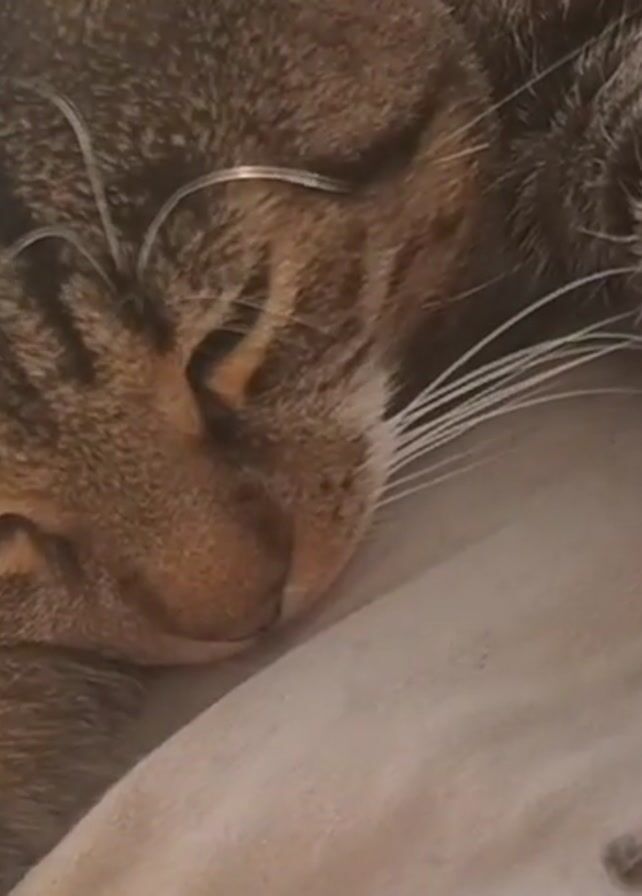 - "A brown tabby cat is sleeping on a light-colored surface, possibly a bed or cushion" by FM-JPM2z2, licensed under CC BY 4.0