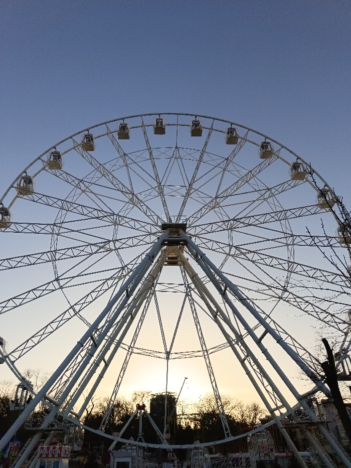 - "A large Ferris wheel dominates the frame, viewed from a low angle during either dusk or dawn" by FM-qrCUd2, licensed under CC BY 4.0