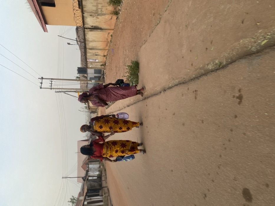 - "An outdoor scene in Sabon Gari Nassarawa, Nigeria, depicts three adult females walking abreast on a reddish-brown, potentially dirt or poorly paved, street under a hazy sky" by FM-8pMv02, licensed under CC BY 4.0