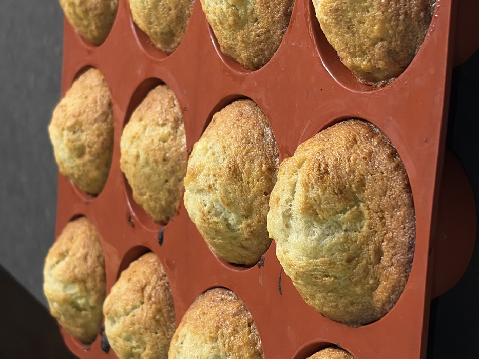 - "The image displays a reddish-orange silicone muffin pan containing twelve freshly baked muffins" by FM-1GLuK2, licensed under CC BY 4.0