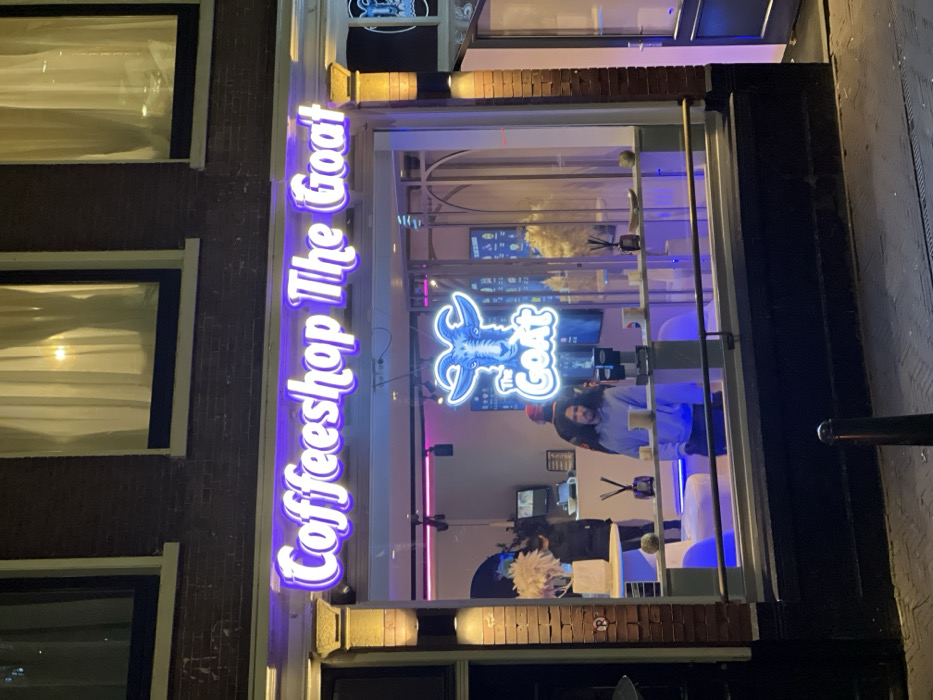 - "The image depicts the exterior of "Coffeeshop The Goat" at night, located in The Hague, Netherlands" by FM-dO5aw2, licensed under CC BY 4.0
