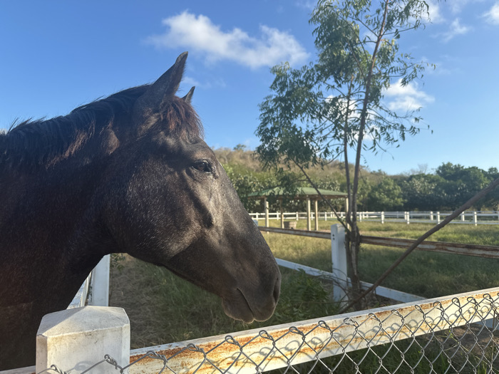 - "A dark brown horse stands close to a rusty chain-link fence with white posts" by FM-4CqV83, licensed under CC BY 4.0