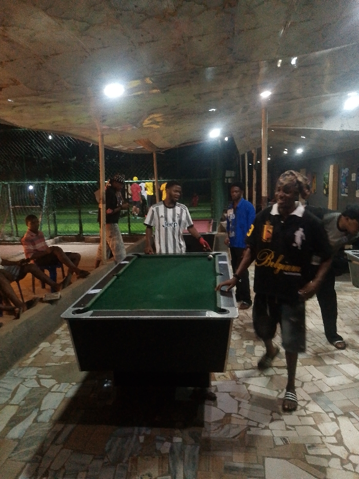 - "An outdoor billiard table dominates the frame, surrounded by people" by FM-LzJlZ2, licensed under CC BY 4.0