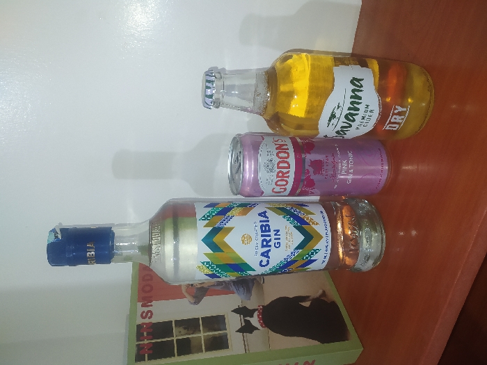 - "The scene is an indoor, static shot displaying three alcoholic beverages on a reddish-brown polished wooden surface, against a plain white wall, located in Thika Township ward, Kenya" by FM-vInnf2, licensed under CC BY 4.0