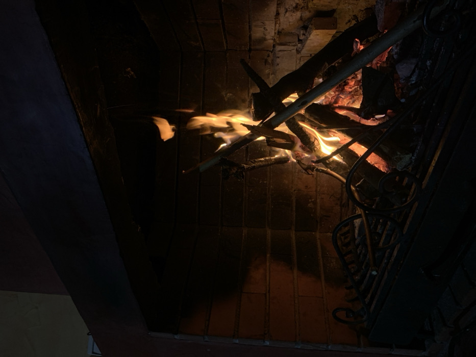 - "A fire burns inside a brick fireplace" by FM-5gXC02, licensed under CC BY 4.0