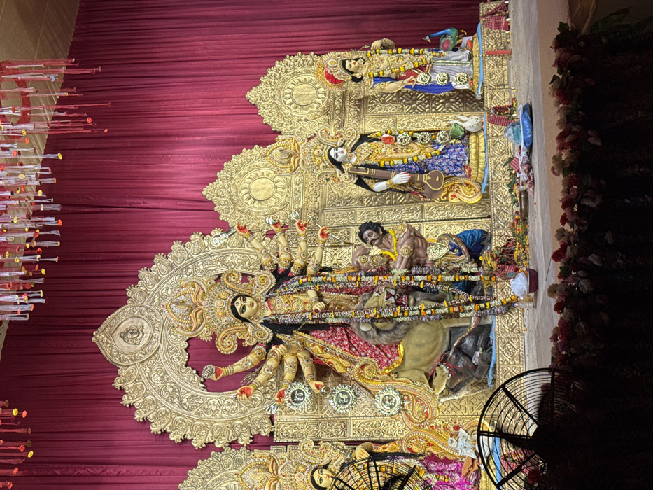 This image depicts a Durga Puja pandal in Bidhannagar, India