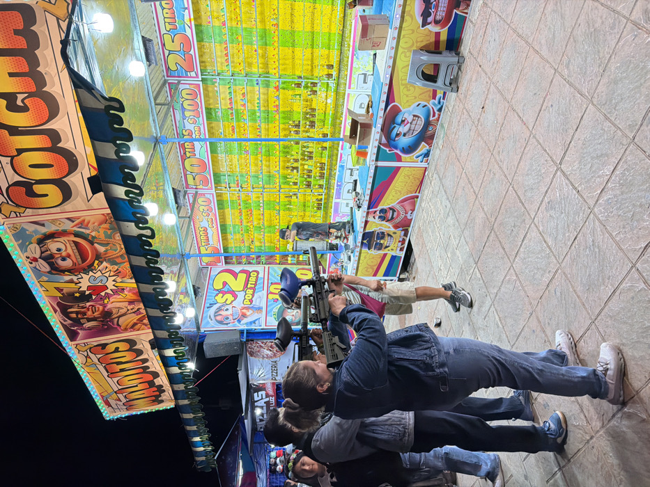- "People stand at a carnival game stall, aiming paintball guns" by FM-Ft7F82, licensed under CC BY 4.0
