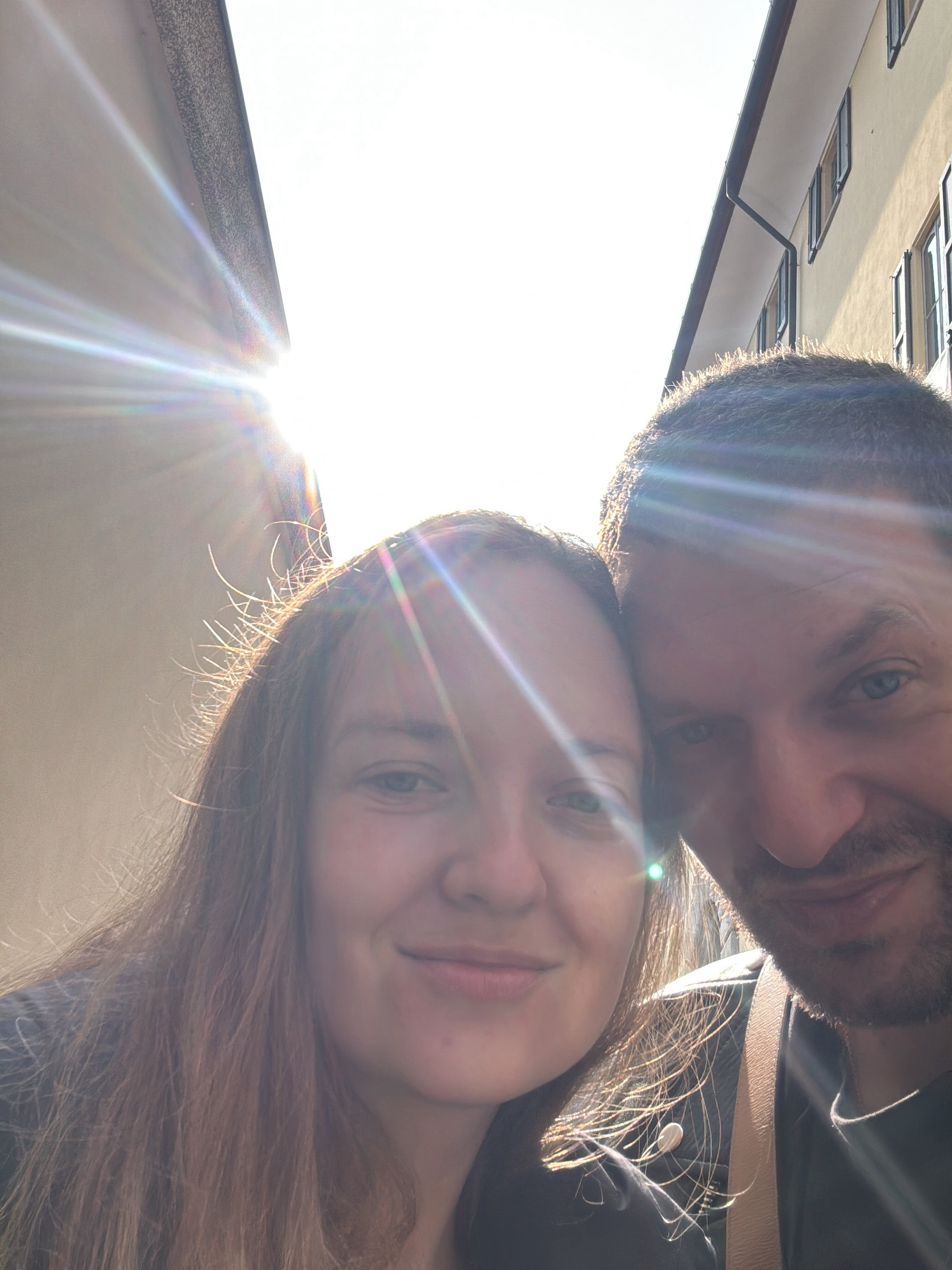- "This is a close-up selfie photograph of two individuals, a female and a male, standing in a narrow urban passage in Como, Italy" by FM-SHEMl1, licensed under CC BY 4.0