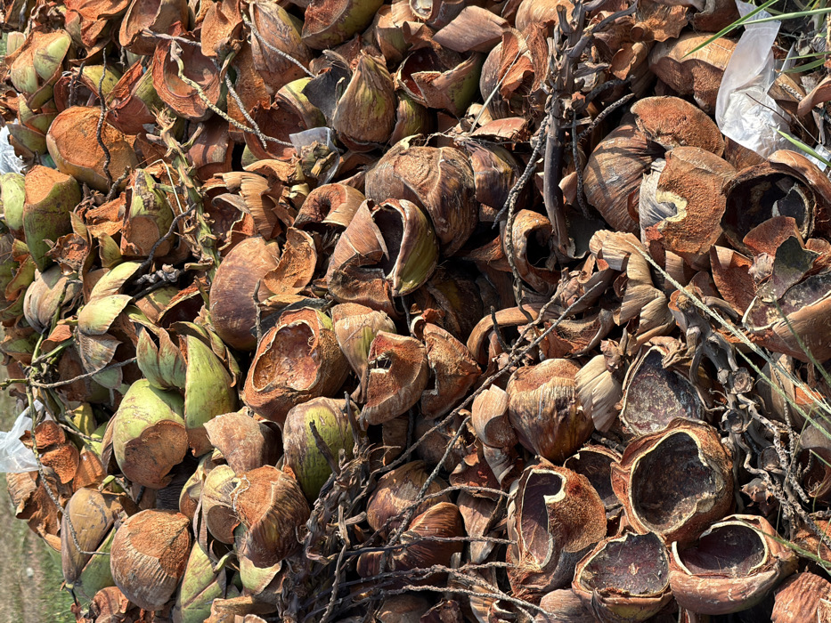 - "The scene displays a large, dense accumulation of discarded coconut husks and shells located outdoors in Lhokseumawe, Indonesia" by FM-iqjuc2, licensed under CC BY 4.0