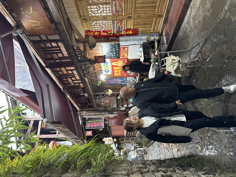 This image presents a narrow, wet stone alleyway in Gongtan, China