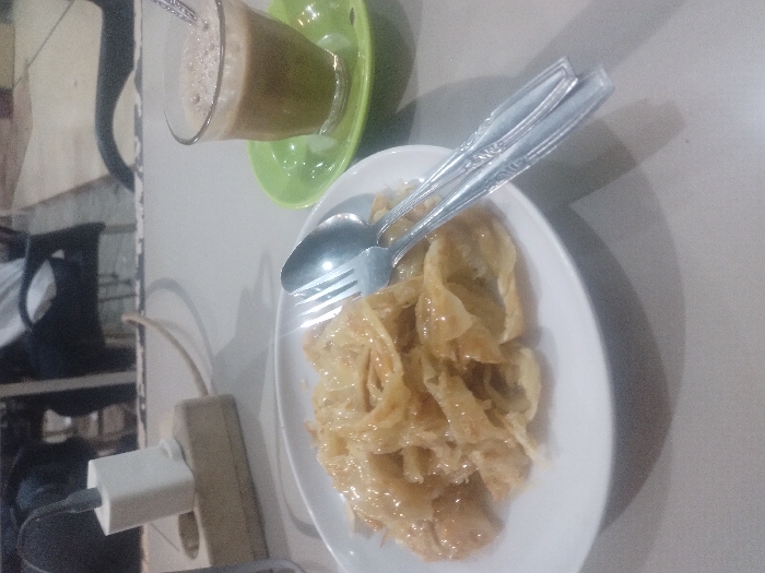 - "A white plate holds a serving of Roti John, accompanied by a fork and spoon" by FM-D7zUe2, licensed under CC BY 4.0