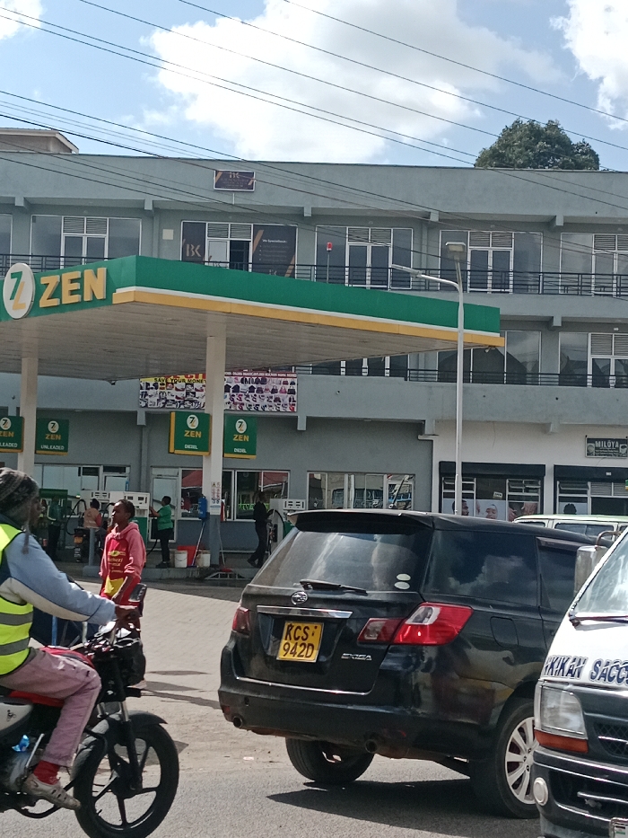 - "The image displays a daytime street scene in Kiserian, Kenya, centered on a "7 ZEN" gas station and an adjacent multi-story building" by FM-U47GF3, licensed under CC BY 4.0