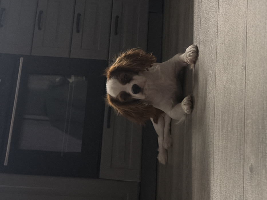 - "A Cavalier King Charles Spaniel lies on a grey, wood-effect floor" by FM-wsVVs1, licensed under CC BY 4.0
