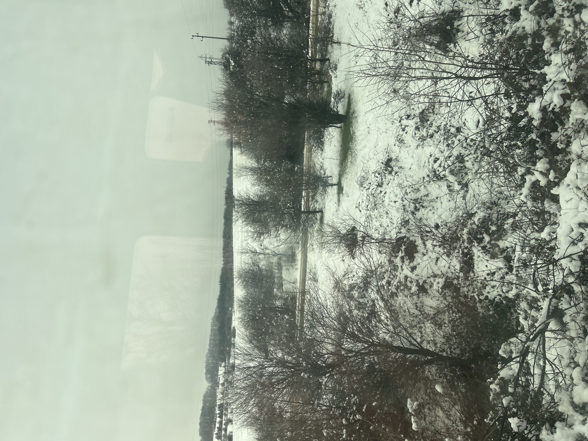 winter landscape in Vakarel, Bulgaria, partially obscured by what appears to be a window