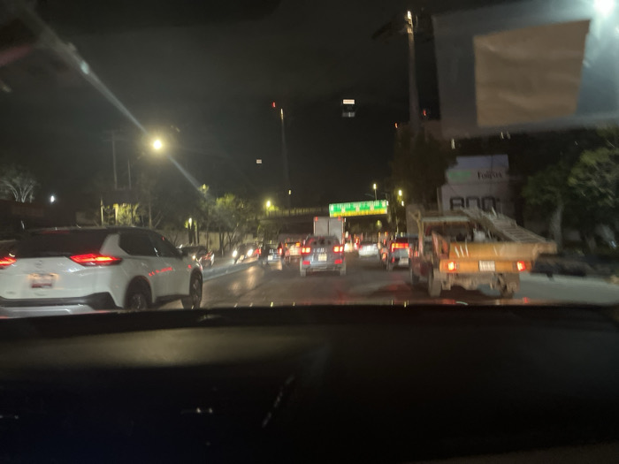- "A night view from inside a car shows a traffic jam on a highway" by FM-pWP9y1, licensed under CC BY 4.0