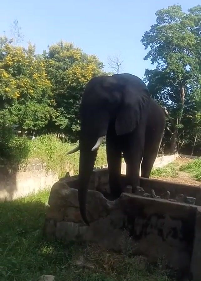 - "n elephant standing in front of a stone water trough" by FM-Fm7VJ2, licensed under CC BY 4.0