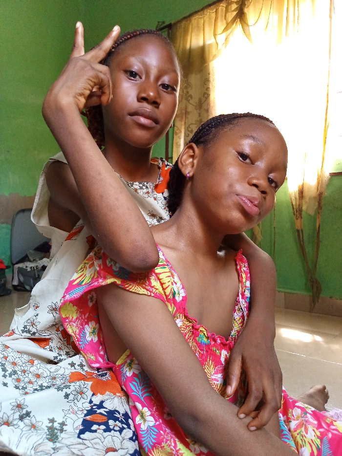Two young Black females are depicted indoors in Zango-ndaji, Nigeria