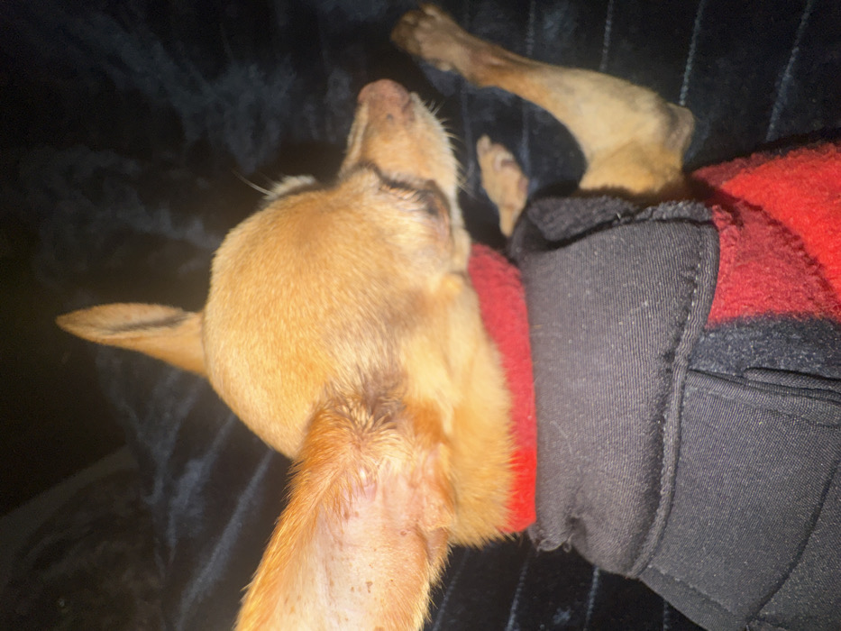 - "A small, tan-colored dog lies on its back, seemingly asleep" by FM-Zi9hg2, licensed under CC BY 4.0