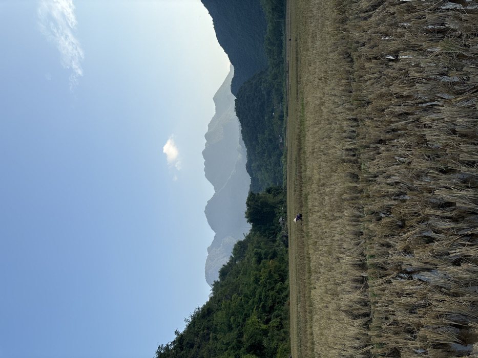 - "The image depicts a rural landscape in Mai Chau, Vietnam, characterized by a recently harvested rice paddy field under a clear blue sky with a single small white cloud near the top center-right" by FM-bmo3E3, licensed under CC BY 4.0