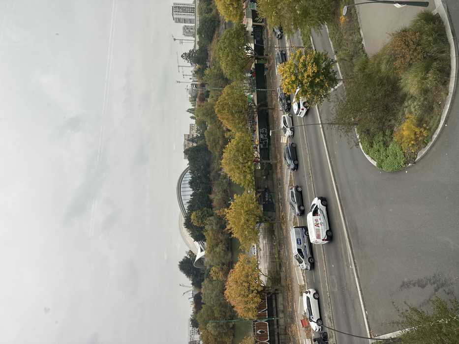 This image depicts an urban landscape under an overcast sky, observed from an elevated position in Saint-Ouen-sur-Seine, France