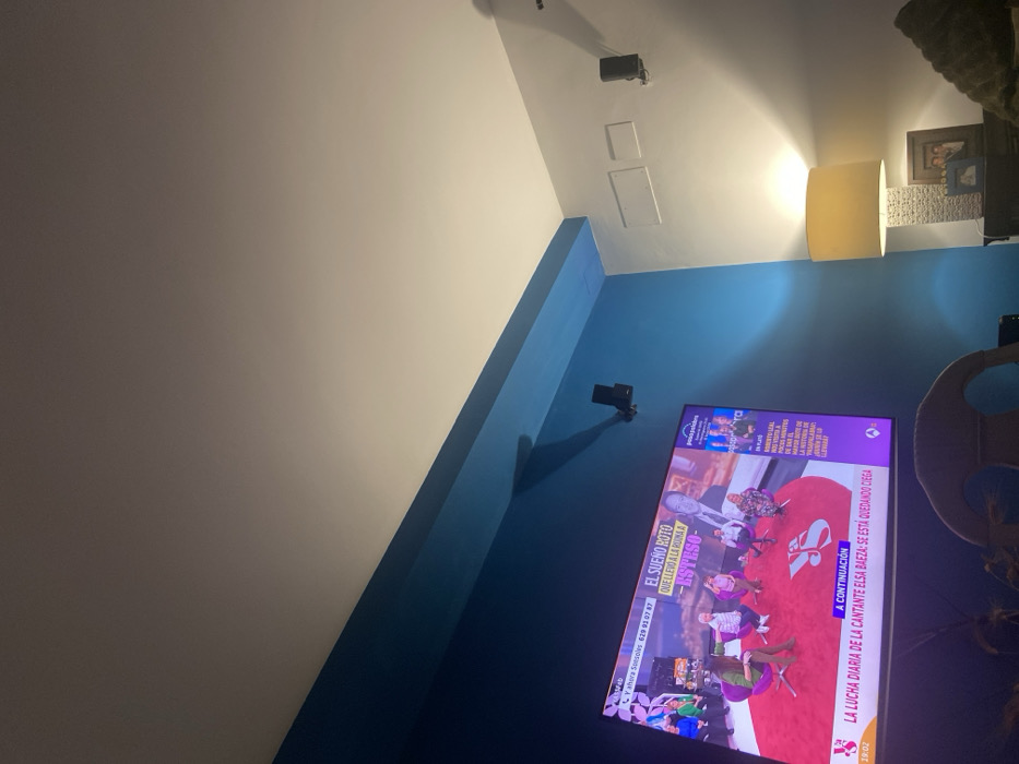 A television displays "El Sueño Roto" ("The Broken Dream"), a program featuring Elsa Baeza, a singer who is losing her sight