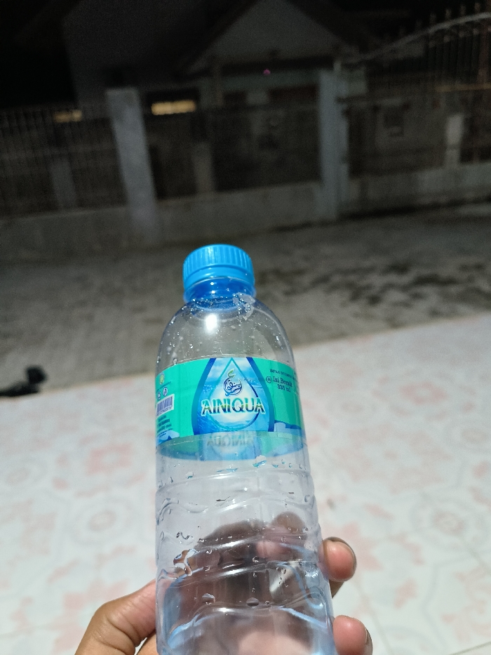 - "The image depicts a close-up, low-angle view of a person's hand holding a clear plastic bottle of "AINIQUA" brand bottled water at night in Lhokseumawe, Indonesia" by FM-GjfbY2, licensed under CC BY 4.0