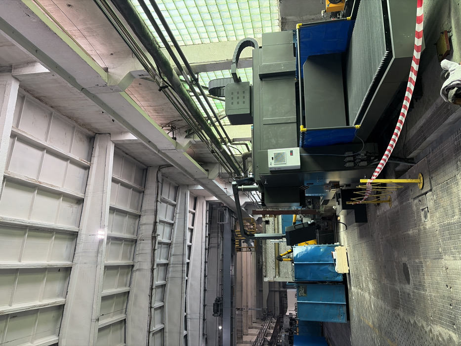 This image depicts an industrial interior located in Mahilyow, Belarus, characterized by concrete construction and heavy machinery