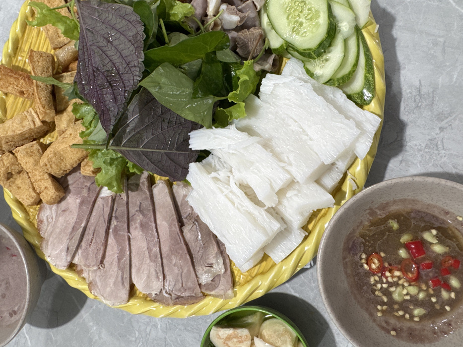 - "This image captures a close-up, overhead view of a Vietnamese meal served on a grey, textured table surface in Dĩ An, Vietnam" by FM-A5Z132, licensed under CC BY 4.0