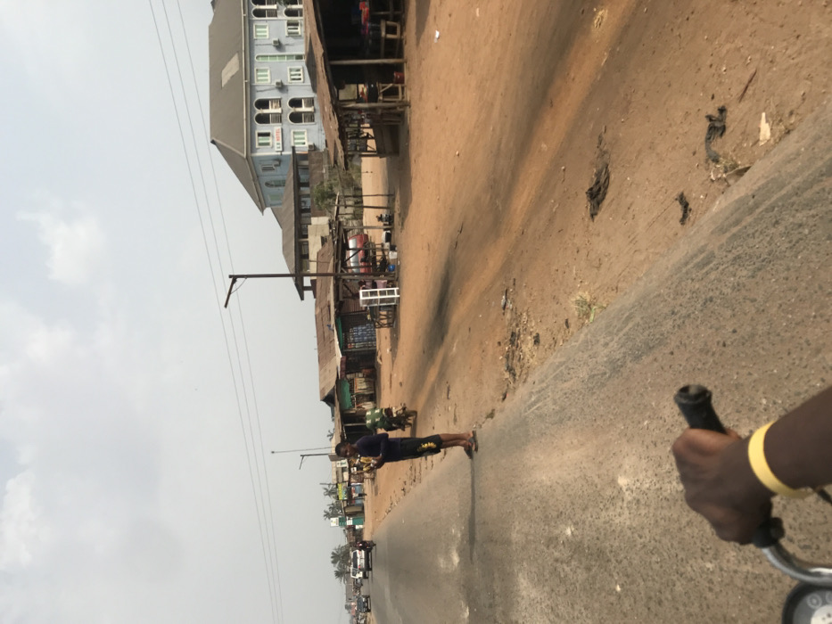 This image depicts a roadside scene in Oba-Ile, Nigeria