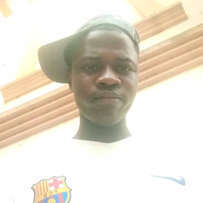 A young man wearing a baseball cap faces the camera with a neutral expression