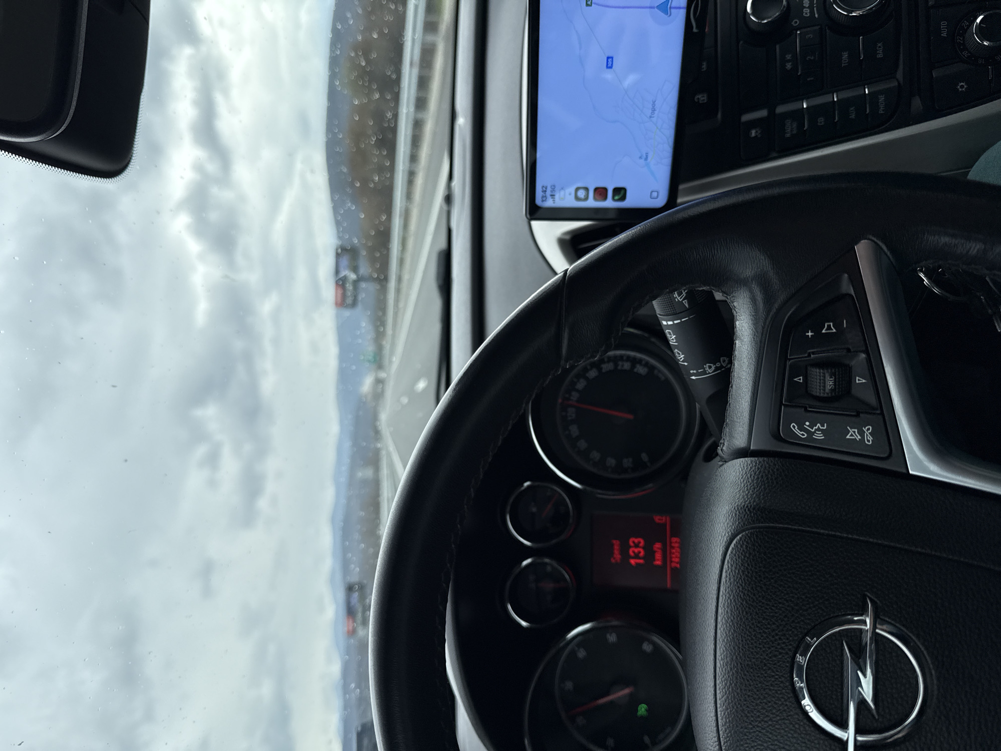 - "The image depicts the interior of a vehicle from a driver's perspective, traveling at 133 km/h on a multi-lane highway under an overcast sky with visible raindrops on the windshield" by FM-uAKBo2, licensed under CC BY 4.0