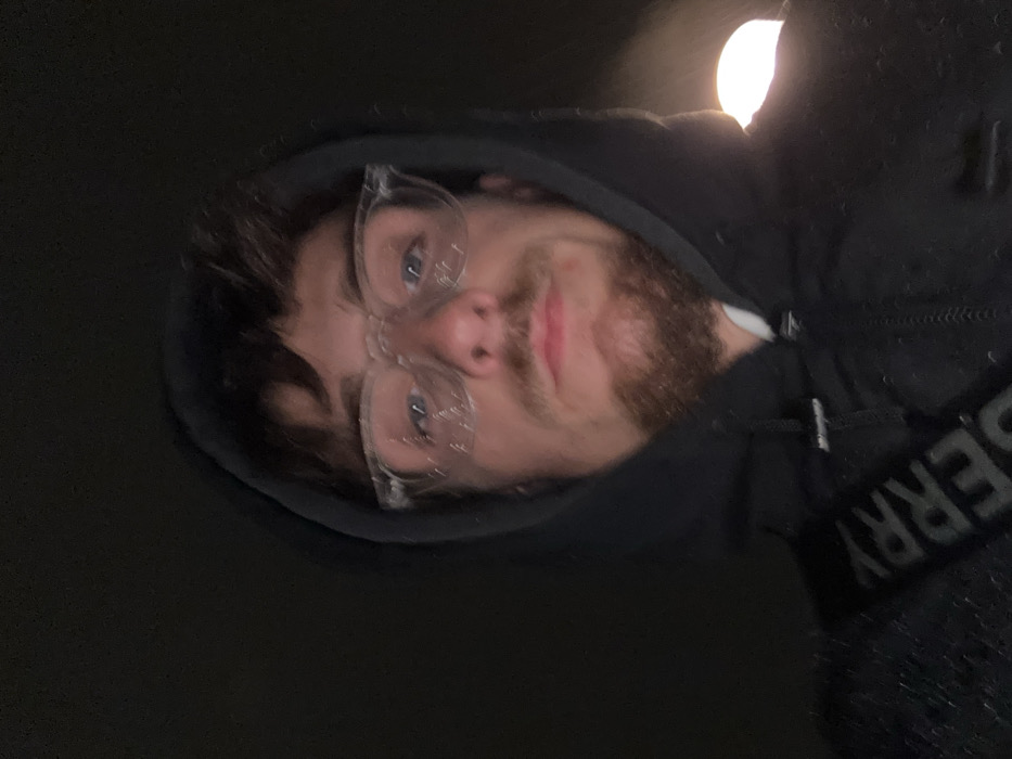 - "A person with fair skin, wearing clear glasses and a black hooded jacket, is centrally framed against a dark background" by FM-reQ1G2, licensed under CC BY 4.0