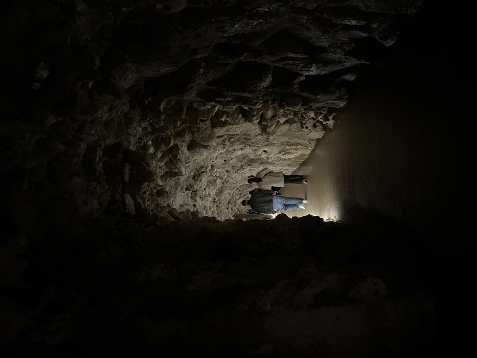 - "Two people stand on a brightly lit path within a dark cave" by FM-l2qUu2, licensed under CC BY 4.0