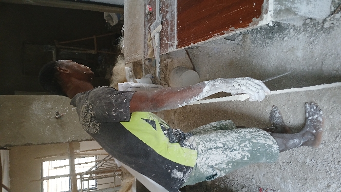 An adult male is observed in a construction or renovation environment in Angwan Sayawa, Nigeria