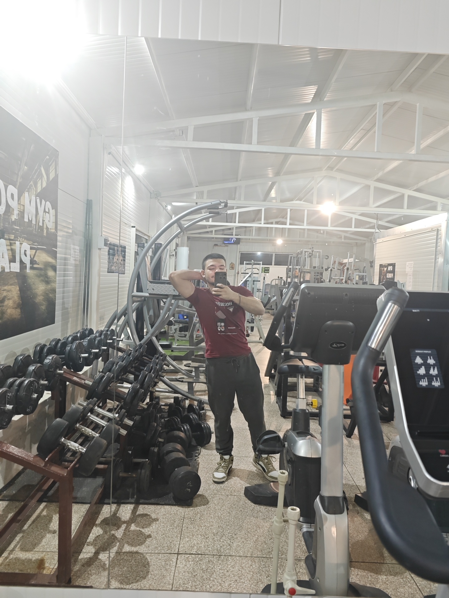 A man is taking a selfie in a gym in Gulyantsi, Bulgaria