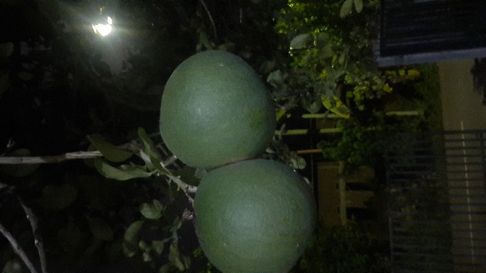 - "The image, taken at night in Lhokseumawe, Indonesia, features two large, spherical, green fruits, consistent with unripe pomelos, suspended from a tree branch in the foreground" by FM-G8tBf1, licensed under CC BY 4.0