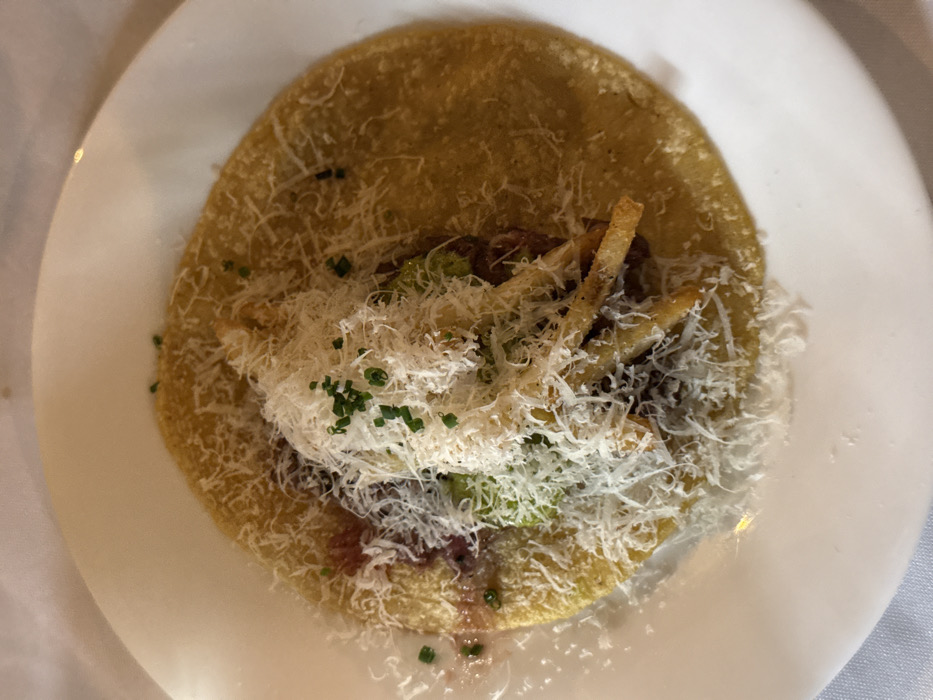 - "A single taco is centrally positioned on a white, round ceramic plate" by FM-AIn2W2, licensed under CC BY 4.0
