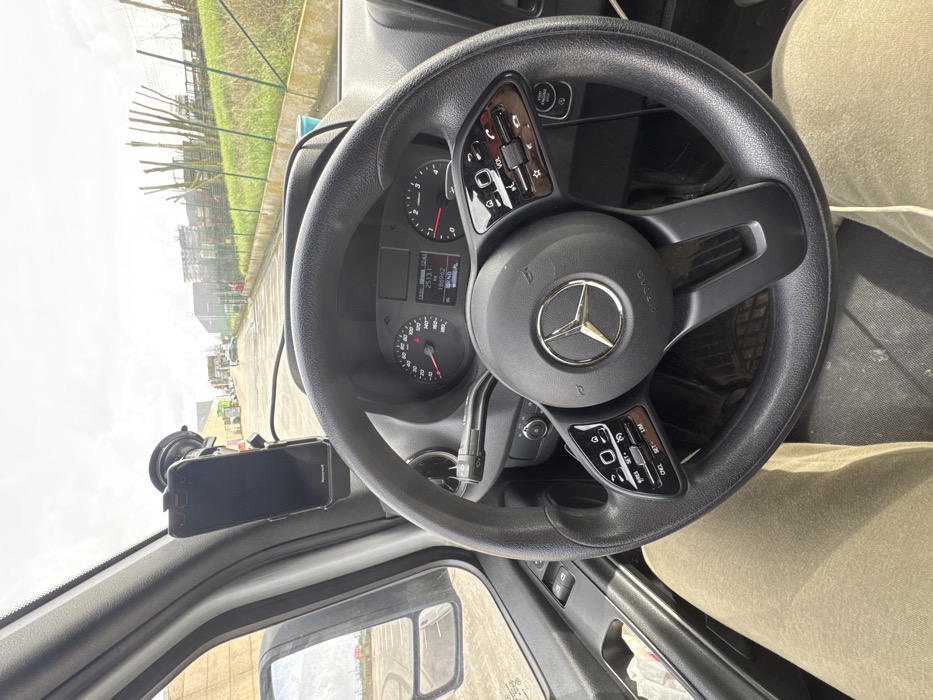 - "The image depicts a first-person view from the driver's seat of a Mercedes-Benz commercial vehicle, likely a van, situated on an asphalt industrial road in Roeselare, Belgium" by FM-OzukK2, licensed under CC BY 4.0