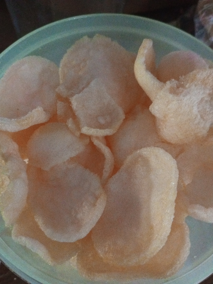 - "A pale green bowl is filled with light orange, puffy shrimp chips" by FM-JzEnU2, licensed under CC BY 4.0