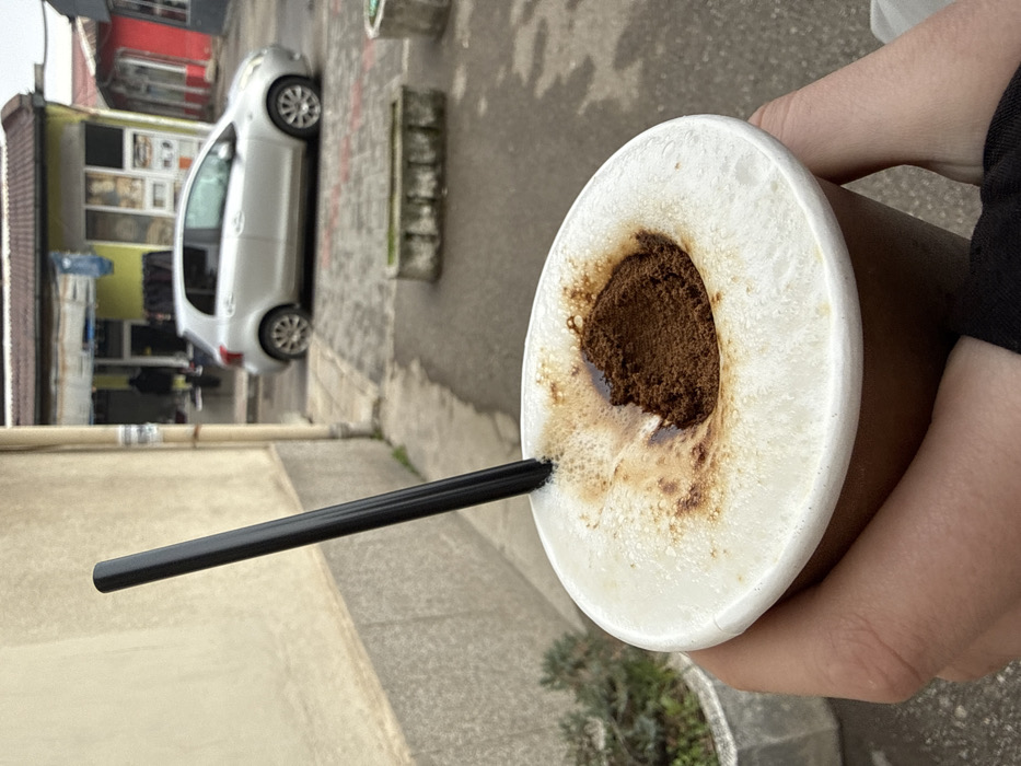 - "A pair of hands holds a disposable paper cup containing a frothed beverage topped with a central mound of dark brown powder and a black plastic straw" by FM-pq4On2, licensed under CC BY 4.0