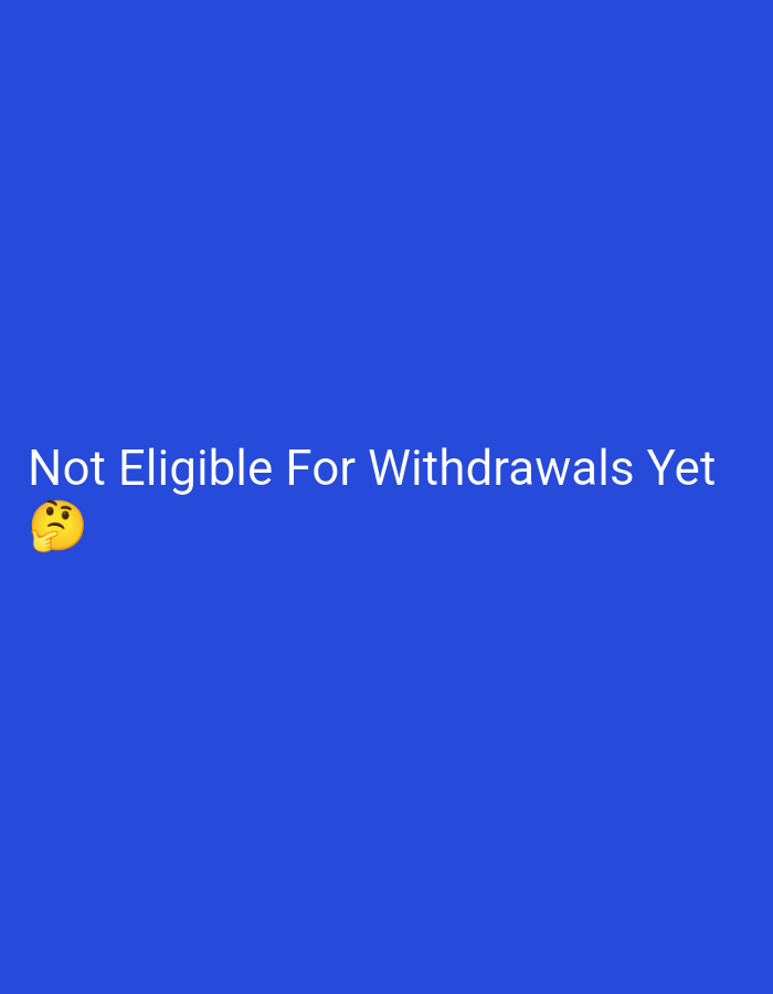 - "The image displays white text stating "Not Eligible For Withdrawals Yet," positioned centrally against a solid royal blue background" by FM-vhmNj2, licensed under CC BY 4.0