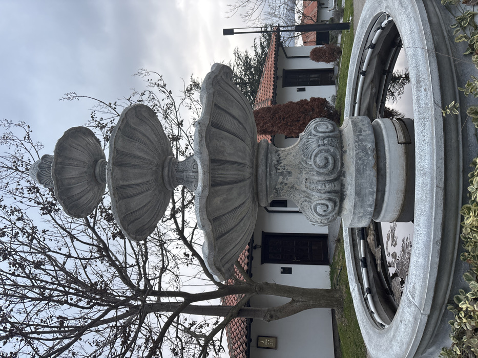 - "The image depicts an outdoor scene in Баня, Bulgaria, centered on a large, weathered three-tiered concrete fountain" by FM-HrwM43, licensed under CC BY 4.0
