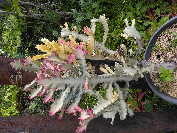 - "The image displays a potted, variegated Euphorbia trigona plant, approximately one meter in height, situated outdoors in San Cristóbal, Costa Rica" by FM-AWsTN2, licensed under CC BY 4.0