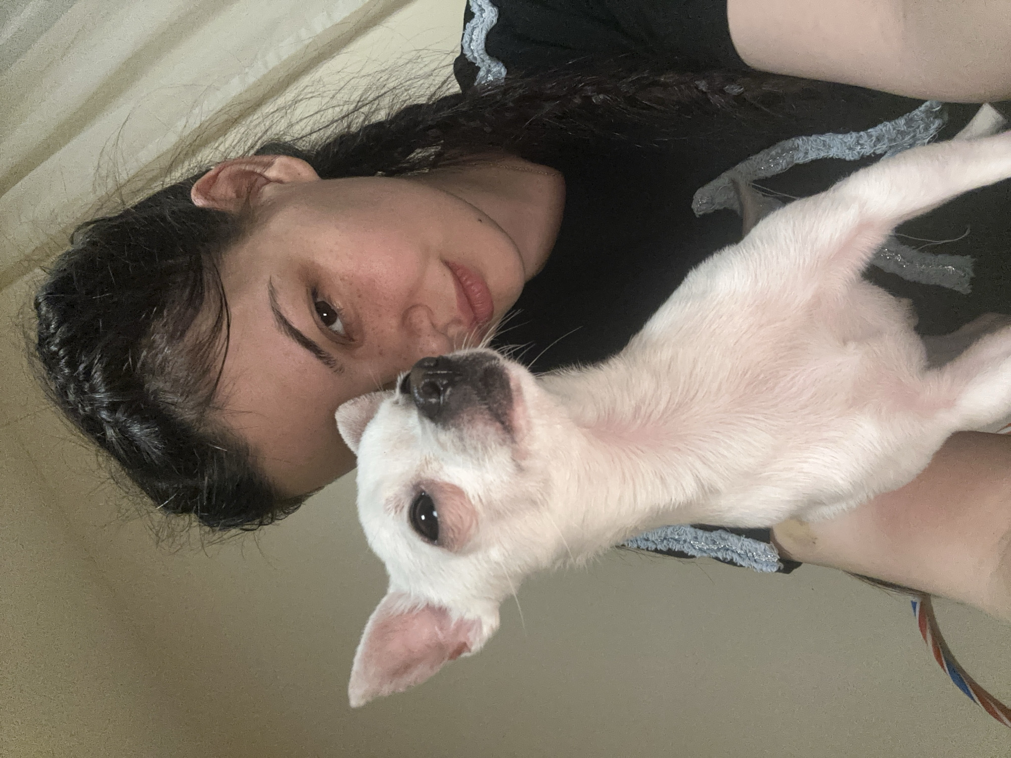 - "A woman with dark, braided hair is holding a small, white dog close to her face" by FM-GIf9Q2, licensed under CC BY 4.0