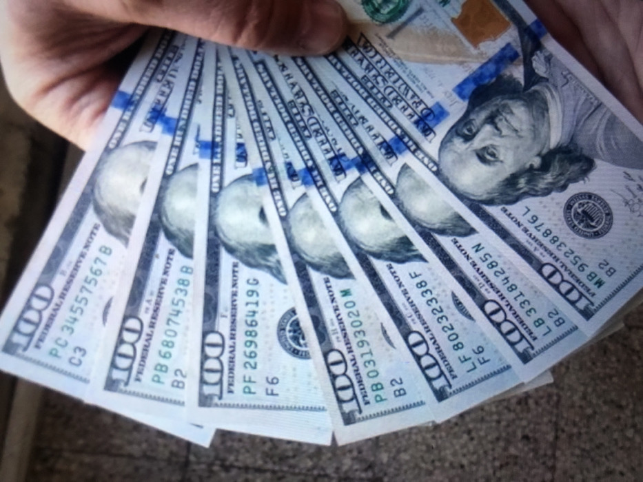 - "A hand holds a fan of United States one hundred dollar bills" by FM-VUwGn1, licensed under CC BY 4.0
